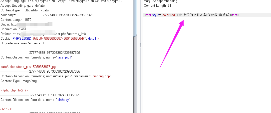 正常上传php探针,会被拦截,经过大小写等方式测试后发现无法绕过,然后猜测可能是白名单。