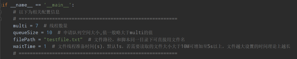 waitTime = 1 # 文件线程准备时间(s),默认1s,若需要读取的文件大小大于10M可增加至5s以上,文件越大设置