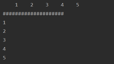 | public class Test { public static void main(String[] args) { int A[] = {1,2,3,4,5}; for (int i=0;i<A.length;i++){ System.out.printf("%5d",A[i]); } System.out.println("\n####################"); for (int i=0;i<A.length;i++){ System.out.printf("%d\n",A[i]); } } }