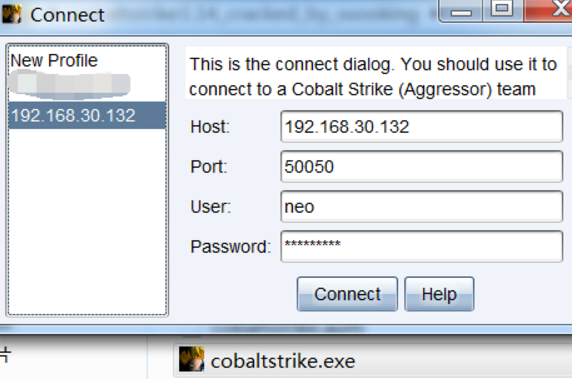 客户端连接: 在下载好的CobaltStrike文件家中还能发现名为CobaltStrike.exe的文件,这个就是我们客户端的启动程序,将其放在windows上,然后双击运行。