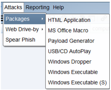 1 2 3 4 5 6 7 HTML Application #生成恶意的HTA木马文件 MS Office Macro #生成office宏病毒文件 Payload Generator #生成各种语言版本的payload USB/CD AutoPlay #生成利用自动播放运行的木马文件 Windows Dropper #捆绑器,能够对文档类进行捆绑 Windows Executable #生成可执行Payload Windows Executable(S) #把包含payload,Stageless生成可执行文件(包含多数功能)
