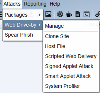 1 2 3 4 5 6 7 Manage #对开启的web服务进行管理 Clone Site #克隆网站(可记录受害者提交的数据) Host File #提供Web以供下载某文件 Scripted Web Delivery #提供Web服务,便于下载和执行PowerShell Payload,类似于Metasploit的web_delivery Signed Applet Attack #启动一个Web服务以提供自签名Java Applet的运行环境 Smart Applet Attack #自动检测Java版本并利用已知的exploits绕过security System Profiler #用来获取一些系统信息,比如系统版本,Flash版本,浏览器版本等